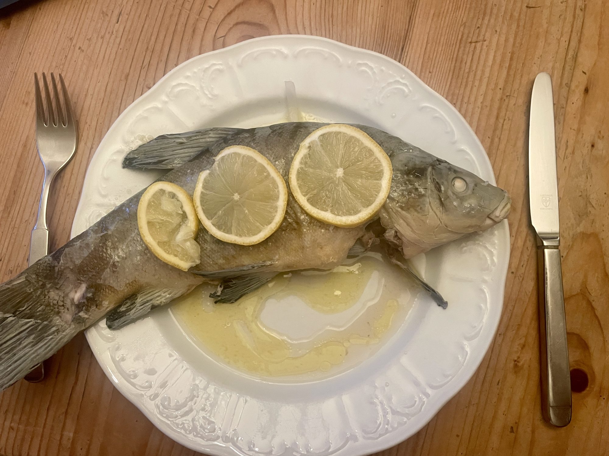 • 1 frischer Fisch (ca. 800–1200 g) – Forelle, Schleie oder Karpfen